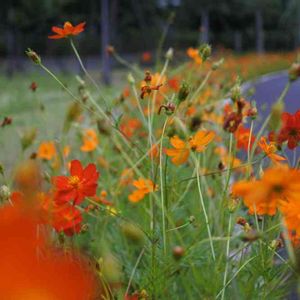 薔薇の隣では、コスモスが 風にゆらりとなびいてく