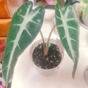 アロカシア 🌿💓 今日からの新入りちゃんです! 色々種類がある中で一目惚れ。 見たことないし、可愛い!!