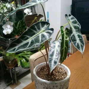 こんばんは😃 毎日、暑いですね☀ 今日は、葉っぱの模様が大好きな アロカシア・バンビーノです💚 アマゾニカが欲しかったのですが… 小さめのバンビーノにしておきました(*^^*) 先日、たまにはバーゲンで 洋服👚💴⤵買おうかなぁ~と 思い立ち出かけたのですが~ この服を買うなら、あの植物🌴🌿🍃💚の方が欲しい❗とか… 植物の値段と比べるようになり… う~ん😔 桜の植中毒は、重症です😱😨😱😨😓😝