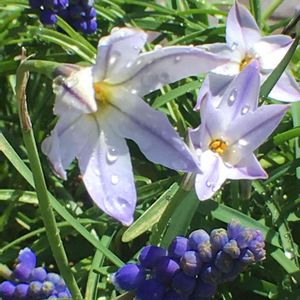 おはようございます☀ お水たっぷりもらえたね✨ 放置で毎年顔を見せてくれる ムスカリとハナニラ🏠 今日はまた横浜に🚅 来週から術後の診察です🏥