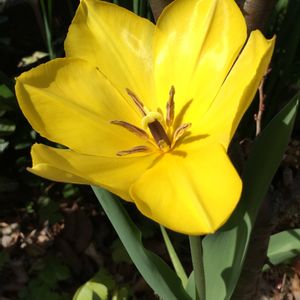 こんにちは😃 幸せの黄色いお花🌼 参加させていただきますね❣️ 桜の木の下で主張するチューリップ🌼