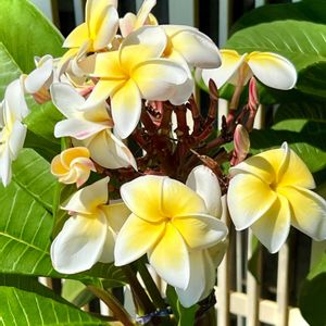 おはようございます☀️ 今朝のお花は プルメリア🤍💛 昨日 仕事の後のランチで 久しぶりに行った和定食屋さん ちょうど満開のプルメリア とても綺麗でした✨