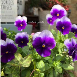 おはようございます☀️ 10月に定植したビオラビビビーコン、ヘデラ、チューリップ(球根)の寄せ植え💜 鮮やかで美しい花色です🌸 今日も素敵な1日をお過ごし下さい😊
