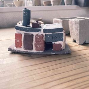 陶芸窯の模型が出来ました、、、汚なぁい笑笑😂 横に焚き口があるタイプにしたんだけれど(海外のYouTubeでこの形が良く焼けていたから)なんか縦型が良いような気がする。 内部は焼成室が一段上がっていて登り窯のミニ版のような造りです。 煙突も本当は横から縦に⤴️伸ばす方が燃焼効率が良いようだし。 焚き口の中にはロストルも入っています。 また作り直しかなぁ。