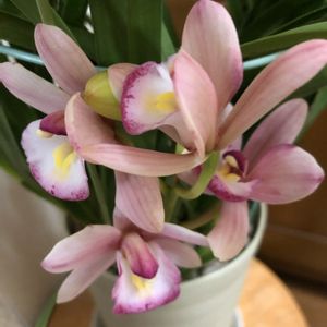 しんびすとのテーブルシンビ 森の精“花あかり“ 石田蘭園オリジナル品種だそうです。 今年初めて花が咲きました💕