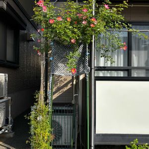 自作のスタンダード仕立てのつるバラピンクカクテルが満開?です。 今咲かせるつもりはなかったのですが摘蕾が間に合わず…でもこんなに咲きたがってるならもういいかなと。 夏顔でも沢山咲いてるとかわいいですよね☺️ みどりのまとめもあるのでよろしければご覧ください。