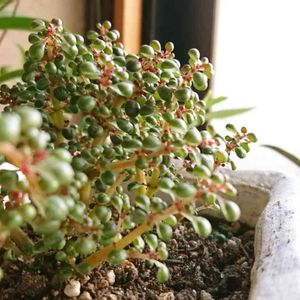 サボテン展の戦利品の一つ、ピレアグロボーサ😊 冬は真っ赤に紅葉する、かわいい品種ですが、以前の株は夏にダメにしてしまいました😓 生産者の方に育て方を聞けたので、もう一度挑戦してみたいと思います☺️ お水が好きみたいですよ(^^)