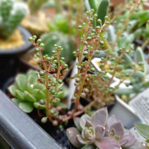 赤いつぶつぶ🥰 これはお花かな⁉️ 鏡面朝日で透けてるのが綺麗なんだけど上手く撮れない😝 はぁ~ゆっくり多肉に戯れたい😫