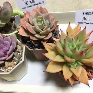 今日の戦利品 前4つはコーナン その他はアヤハディオ 2件目行ったアヤハディオの花市フェア🌸 多肉植物エケベリア🏷と多肉植物サキュレント🏷って 品名が書かれてないので店員のお兄さんに なんて名前ですかね?って尋ねたら こっちはエケベリアでこっちはサキュレントですね☝🏻 って🤣🤣🤣 笑いを堪えるのに必死の私😆 エケベリアの中のなんて名前かが聞きたかったのに〜 ( *´艸`)クスクス サキュレントって名札自体も笑けるね(((*≧艸≦)ププッ あ、いいですよ、また調べてみますので❣️ と言って他を見てたら そのお兄さん、親切に、 「さっきの分からなかったので先輩連れてきました!」 って〜なんて律儀な🤩 そしてその先輩とやら入荷の連絡くれる あのお兄さんだった〜😉 分厚い本と多肉のカタログ持ってきて これかな?こっちかな?とフェアで忙しいのに 丁寧に調べてくれて(̥ ̥এ́ ̼ এ̥̀)̥̥੭ੇʓ ੭ੇʓ なんと親切な🤓😉💕 忙しいのにいいですよ〜 ってわざわざ調べてくれたお礼を言っておいたけど 結局分からなかった〜😭 後列真ん中の木立ちの子が気になる〜😅