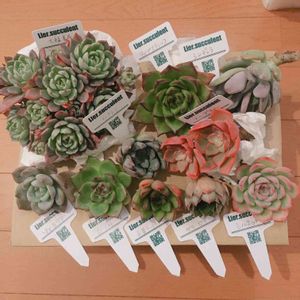 久しぶりにホームセンタームサシへ☘ 相変わらずいろんな種類があって5つと決めてたのに7つも買ってしまいました😅 良く行くホームセンターにはいつも決まった品種しかないから🎵 上段左から☘熊童子☘艶姿☘プリンセスパール 下段左から☘ペンデンス☘ウインクレリー☘プラティフィラ☘花月夜