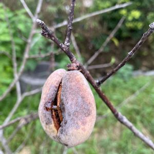 アーモンドさん、 蜜でてます。 いまのところ落ちてなさそうで 大丈夫そうですが 一部 かびてきました。 ヒビがはいるまで 今年もどのくらい生き残ってるのか 耐久レースです\\\\٩( 'ω' )و //// 6月6日の様子