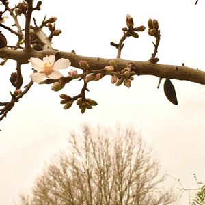 一番最初に開花したアーモンド こころなしか膨らんできてるような?? でも、アーモンドは膨らんでも熟す前に落下する事が多いらしいので、これがちゃんと実になるのかはまだわかりませんね😥