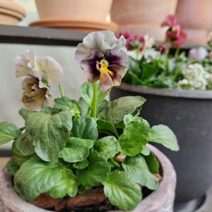 12月に作ったフリルパンジーの寄植えですが、最近やっと花数が増えて見られる状態になってきました❣️ 寒色系の花とリーフの組み合わせなので、ちょっと渋め、可愛い狙いではありません😆