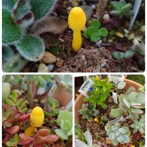 いーやー!! きもちわる! いや、カラフルか? 去年のびのびで届いた苗を ふてくされながら とりあえず1つの鉢に植えたもの 寄せ植えに何度かカットして 使せてもらってますが 黄色すぎるやんこのキノコ この置場所 扇風機の風あたらないし キノコ出ても納得だけど 多肉もわりに元気(笑) 普及種やでかな