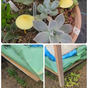 あー根性無しでよかった(笑) おとつい遮光シートはずしたけど 昨日の朝からおろしてきて 両サイドをクリップでとめてました(笑) 予報は曇りか雨ちゃうん! 夏日みたいやし! 気を取り直して こちら、すでに納品済みですが寄せ植え幾つかです😅