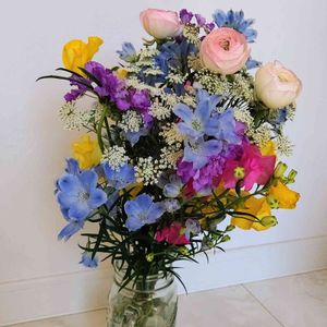 こちらは 初めて仕立て直しを させていただきました。 仕立て直し?とゆうよりも、 八割伸びていたので交換です。 容器とエアープランツと ブルーリボンが お気に入りのようで 再度いれました。 で、前に お渡しさせてもらったのはいつ? と、パソコンさぐってみたら11月。 充分もったとおもうけど、 どうだろか😅 仕立て直してのも、 作るのは緊張するけど 嬉しいな(^^