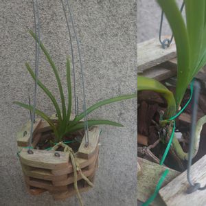 花は咲いていませんが、今日の花がバンダだったので この種はフィリピンに自生する白い花のバンダです。 うちでは1位、2位を争う程希少性の高いバンダです。 涼しくなってきて少し葉が動き始めた気がします。 個人的にはもっと根を出して欲しい😂