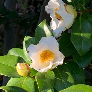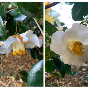 おはようございます😃 白椿です。 かなり大きな木です。 大きな邸宅の門の横です。 太いシベ筒、フリルの入ったラッパ咲きの中輪。 とても爽やかです。 白妙蓮寺という椿でしょうか。🤔 既に投稿した、白西王母、白玉とは違うようです。🤔 この花も太いシベ筒が魅力のいい花だと思います。😘 11月27日に投稿した花と同じ名前にしました。 少し、開き方が違うようにも見えますが、特徴は似ていると思います。🤔 臘月という椿にも似ています。 これから、継続して、観察してみたいと思います。😁