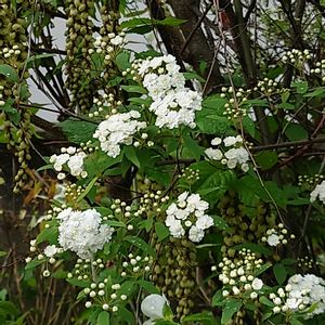 庭の「コデマリ」が 咲き始めました! 「斑入りコデマリ」は まだつぼみ...