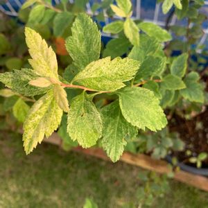 雨がシトシトの一日。 コデマリの斑入り💕 ”桜でまり ピンクアイス”ちゃん ”Spirraea cantoniensis” 葉っぱだけでも楽しめる🤗 お花はまだ少ないんだけど 来年楽しみぃ‼️