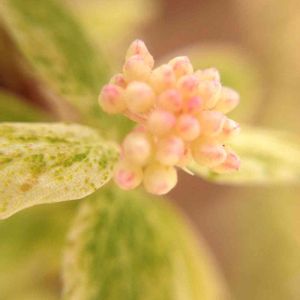 斑入りの葉っぱが日に日に大きくなってきて、かわいいな~と見ていたら、ピンク色の部分は花芽? あ~マクロレンズが欲しいな~