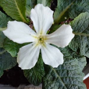 雨☔の予報が出ていながらも午前中は降っていない時間がけっこうありました😊 はじめまして🙂のプリムラに出会いました💖 スターフィーバー🤍です 深い切れ込みが入った星型の花⭐✨✨ 純白の花色が素敵です🤗 雨☔にあてないように育てたいと思います🤍✨🤍✨🤍
