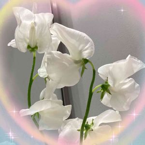 職場お手洗いにて 真っ白なスイートピーが綺麗です♡ バックも白っぽすぎるので、まわりを飾ってみました✨