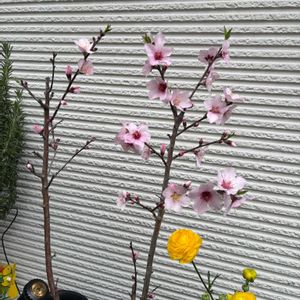 アーモンドの花が2輪咲きました。 🌸🌸オオォォォ(゚ロ゚*)(゚ロ゚*) いま庭には花がない時期のなのでうれしいです。 (*´ノ🍵`*)ズズー