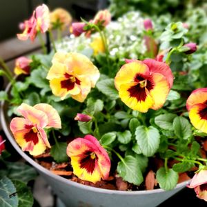 ビオラ りんごの詩 🍎💛🍎💛🍎 美味しそうで 可愛いビオラちゃん😊 よく見えないけど チェッカーベリー アリッサムと 寄せ植えにしました🎵