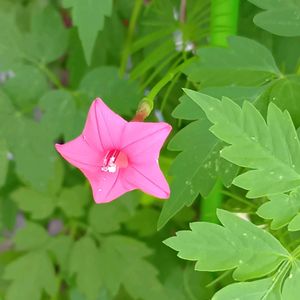 ルコウ草 一昨年、北海道の花友さんからいただいた種を増やして 今年も蒔きました。 西陽の当たるフェンスに絡ませたら 涼しげな葉っぱ🌱の中に赤い星形のルコウちゃんがかわいい😍