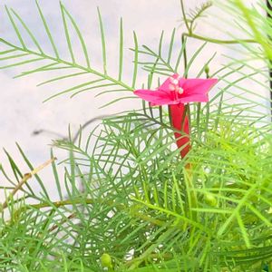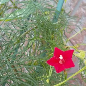 2022.7.9(土) ルコウソウ 🌸 西の空 きれいな朝でした 何故か向こう向きの花です ツルの具合でそうなったのかな⁉️ こっちに向いてほしかった 🥲 一日花で最近 咲きはじめましたが 明日からは頼みます 🙇♂️🤗