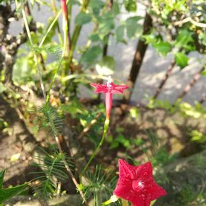 2022.8.4(木) ルコウソウ 🌸 あまってた苗を植えつけたら🌿 朱色の花が咲きました💕 毎年たくさん種が採れて 毎年 種まきしてるけど まだまだ分からない事だらけ🌀 経験しかないかなぁ 😊
