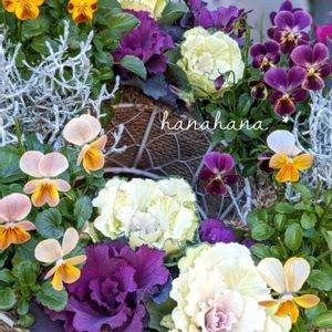 おはよう〜ございます٩(◜ᴗ◝ )۶ 葉牡丹のリングバスケット 作りました😊 葉牡丹もフリフリ😆😆 やっぱりフリフリに目がいきます😂 使用した苗〜 葉牡丹 *frescoグラフィート *フレアホワイト *萌花コレクション プリンセスクローバー シロタエギク アリッサム リーフ類数種