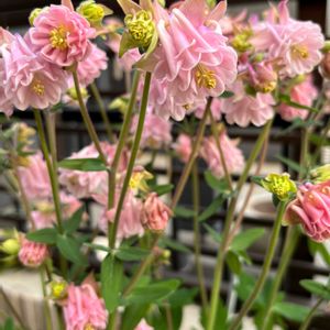 2年目オダマキが、同じ背丈で、一気に咲きました、去年よりも大株になってます。 複雑な花姿が豪華です。