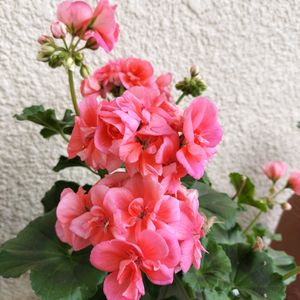 おはようございます😊 ①ローダンセマムちゃん しっかり開花しました🩷 ②ノコンギクの🌿が増えてきました✨ ③④ゼラニウムちゃん👶の 花芽が色づいてきました💕💕 ⑤プリムラジュリアンとシクラメン元気カラーで綺麗です♥💛