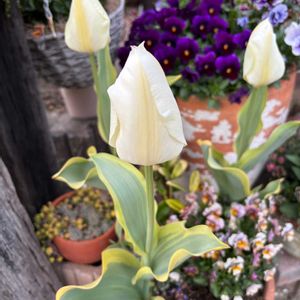 葉色がキレイな斑入りチューリップです。 12月に植えた球根が当たり前だけど、きちんと花が咲いてくれてました。