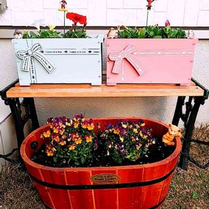 子供たちが自分で選んだペチュニア おにいちゃんは、赤と白 妹は、色が微妙に違うピンクを2つ 子供たちも、ガーデニングデビューです✨