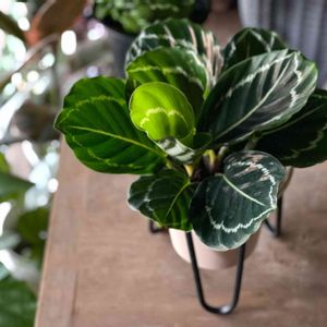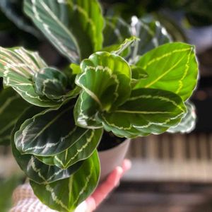 前に買うか悩んでる内に売れてしまい後悔していたカラテアに出会えた😊 グリーンローズ 他のロゼオピクタ系と違い葉裏まで緑で優しい雰囲気✨