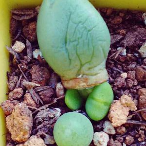 コノフィツム 一個だったのにすぽっと脱げたら下から二個のお子様が出てきました🎵 何❓手品❓って感じで不思議ですね… すぽっと脱げてきたやつはこのままほっておいたらとれるのかな? そもそもこの時期に脱皮していいのかな? とりあえず見守ります