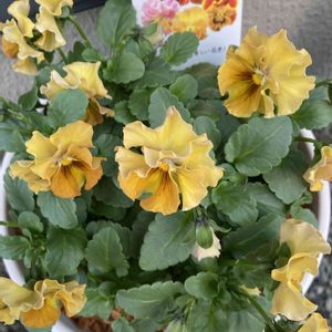 ミルフルアンティークフリル 3株植えです。植え付けてから約1ヶ月、お花が増えて華やか✨植え付け時より色鮮やかになってきました♪暖かみのある秋冬カラーで気に入っています🥰