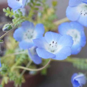 ネモフィラ冬越しチャレンジから… 沢山咲いた!! けど、冬はロゼット状になってたはずなのに徒長している😂 もりもりをイメージしてたのに、葉っぱ少ない…🌱 庭植えだとお水あげなくてもいいくらい、とは書いてあったけど、鉢植えだからあげないとカラカラになっちゃうし…🤔 どうしたもんでしょうか?