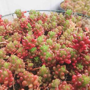 育成トレイのレッドベリー🍎🍏 ぐんぐんグリーン🍏 粒も育ってきて可愛い☺️ 越冬に失敗して諦めてたパープルヘイズはモコモコっと復活‼️ エネルギッシュセダム🔥