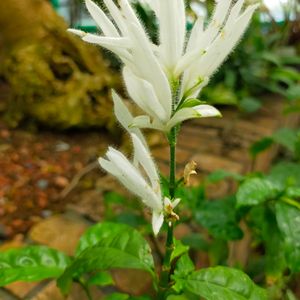 おはようございます🌿 ホワイトキャンドル 植物園内温室にて 常緑低木 キツネノゴマ科 西アフリカ原産で10種類ある中の一つ