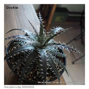 One plant a day. Dyckia ‘Silverback’ original clone × ‘Jaws’ from @kimu7jp すっかり親株の貫禄になりました😉室内で退色してますが、日に当てるとエッジが赤くなってかっこよくなります😏葉数も増えたので、外が待ち遠しい😆