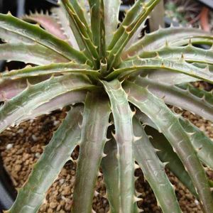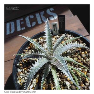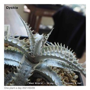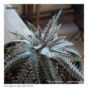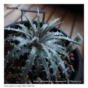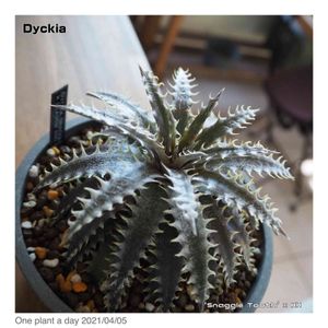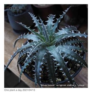 One plant a day. Dyckia ‘Silverback’ original clone × ‘Jaws’ from @kimu7jp 薄くトリコが乗ってエッジが赤茶色になる渋い色合いと、ピッチは広いけど真っ白で鋭い鋸歯のコントラストが何気にいい感じ☺️