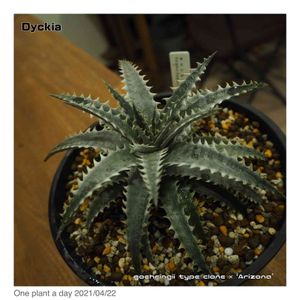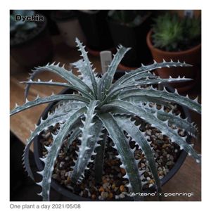 One plant a day. Dyckia goehringii type clone × ‘Arizona’ 鉢の移動が増えるとひっくり返すリスクも増えます😅まだ朝晩冷えるので、日中だけ外に出していたディッキアを取り込み中にひっくり返したので、勢いで植え替え🤣昨年勉強不足で枯らしそうになりましたが、復活どころかガッツリ根鉢になっていたので、ふたまわりくらい大きな鉢に植え替えました😉よく見ると分頭してるね😆