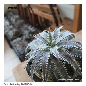 One plant a day. Dyckia ‘Purple Silver Ball’ BCR(16135) #札幌カクタスクラブ秋の展示会第二弾 で注目を集めた株😉 ボールのようなコンパクトな容姿で、密な鋸歯が柔らかい雰囲気☺️今回出展コンセプトのど真ん中のイチオシでした。持って行った子株は真っ先に無くなりました😅育てやすくて綺麗にまとまるお勧めの品種です。 棘が痛いのでと敬遠されている方が多かったのですが、今回展示見て、敬遠されてた方も興味を持って育ててみようと言ってくれてとても嬉しかったです🥰 ちなみに私は棘のチクチクが葉を傷めないバロメータになるので、基本素手で扱ってます🤣
