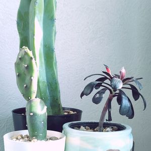 サボテンと、サボテンと、 ユーフォルビア の柱になるやつ3本のうち、 ユーフォルビア が急に枯れてきて🥲 根元を残してプッスリ切りました😭 数日経って気づいたのは、 切り株にちびっ子ついてる☀️