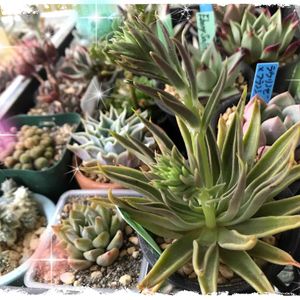 ★ルテオヴィリデ どうも♪ すっかり遅い時間になってしまった💦 本日はルテオヴィリデ♪ ルテア(ルティア)とか、 プラエアルツムの名で流通してる子ですが、 セダム同士の交配種です✨ はじめに言っておきますが、 今日の投稿は間違っているかもしれません(笑) と言うのも、どうも日本での品種の認識が、 海外とは異なっているようだからです😰 まず。プラエアルツムですが、 市場で出回っているそのほとんどは ↑写真の感じならプラエアルツムではありません😑 元々プラエアルツムは宝珠の亜種である 宝珠扇の古い学名なので別種の名称です。 次にルテア(ルティア)ですが、 過去にも品種名として存在していません😑 何故セダム ルテア(Sedum lutea) と呼ばれているのか疑問です🙄 そしてここが一番のキモになるんですが、 ルテオヴィリデにとても良く似た品種に、 セダム キムナッキーというのがあります。 ここが世界と日本との認識が異なっているのか、 特にルテア(ルティア)の名で流通しているものは、 このキムナッキーの可能性が高いわけです🤔 どちらも似たような感じなので、 ぱっと見で見分けるのは難しいと思います💦 ルテオヴィリデは ♀デンドロイデウム 亜種パルヴィフォリウム(宝珠) ♂グレギー(萌黄匂) の交配種と言われています。 グレギー(グレッギー)の流通はほとんど無いですね…。 でも、picの子はキムナッキー(かもしれない!) というわけです😅 あなたの家のルテア(ルティア) またはプラエアルツムと名のつく子は、 全体や葉先がピンク~赤に紅葉しますか? それとも全体が橙に紅葉しますか? ✨おさらい✨ ・プラエアルツムは宝珠扇のこと ・ルテア(ルティア)という品種は存在しない ・ルテオヴィリデは交配種 ・ルテオヴィリデとキムナッキーの認識が微妙 -∴-∵-∴-∵-∴-∵-∴-∵-∴-∵-∴- Sedum 'Luteoviride' セダム ルテオヴィリデ 和名 不明(情報募集中) 別名 ルテア ルティア プラエアルツム(誤り)