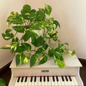 ゴールデンポトス ピアノのおもちゃを花台に♬ 子どものおもちゃを処分しようか悩みましたが花台として活躍してもらうこにしました。